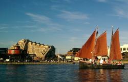 Summer WindSummer Wind is a 48′ steel-hulled Colvin Gazelle schooner doing public tours and private charters in Baltimore. She does five trips each day, including a History Sail that teaches about the maritime history of Baltimore and the Chesapeake Bay; afternoon Harbor Sails with lots of beach music from Bob Marley, Jimmy Buffett and many others; the Sunset Sail with the city skyline; and the popular Wine & Cheese Sail in the evenings. Known as The Small Tall Ship, Summer Wind is the only schooner in the world with its own radio station.